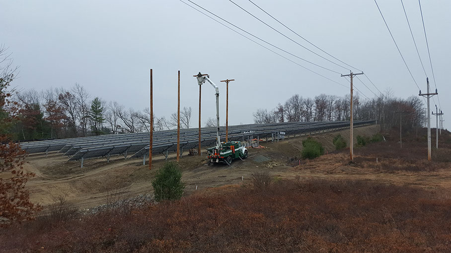Framing the poles we set at a large solar field in Shirley, MA. We then proceeded to install and hookup all necessary primary power equipment.