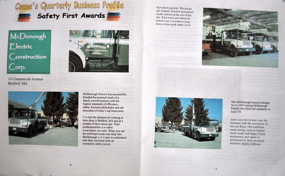 Below is a recognition article written by Cranes Truck Service, who does all of our dielectric testing on our booms, bucket liners, and hot sticks.