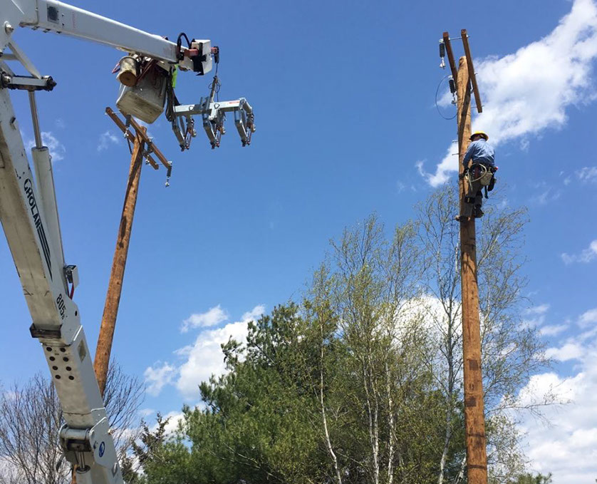 Pulling in Hendrix Spacer cable in Lebanon, NH.