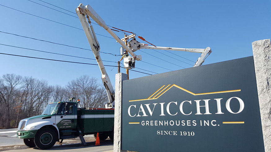 Pole replacement, transfer, and install of floaters at Cavicchio Greenhouses Inc. Sudbury, MA. One of our highly valued customers.