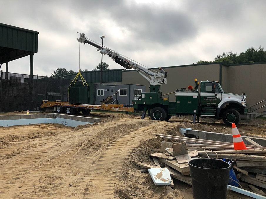 Framing the poles we set at a large solar field in Shirley, MA. We then proceeded to install and hookup all necessary primary power equipment.